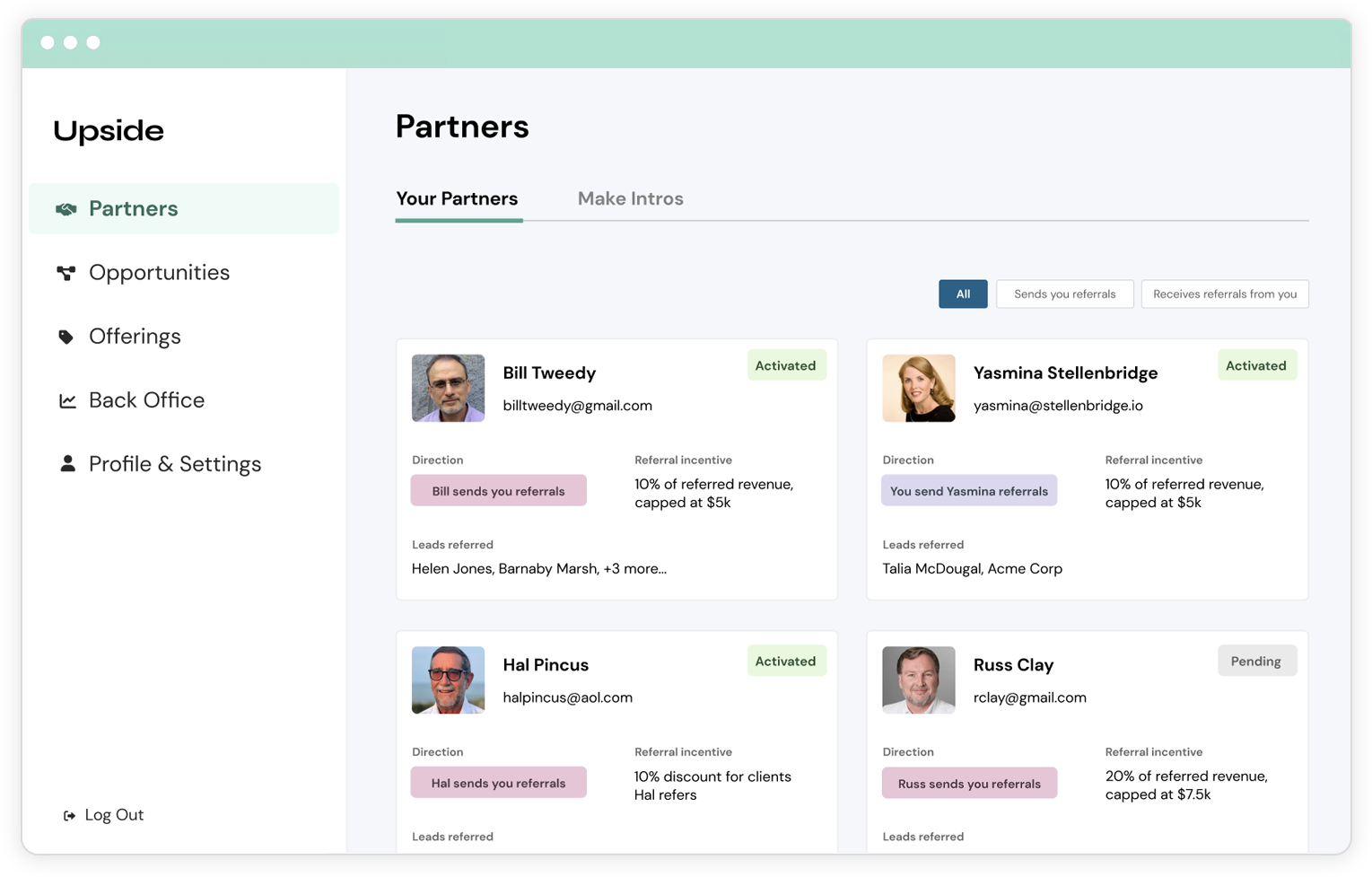 Upside frees you from awkward follow-ups and playing debt collector by handling status updates, feedback, and referral fee payments for every referral you make.