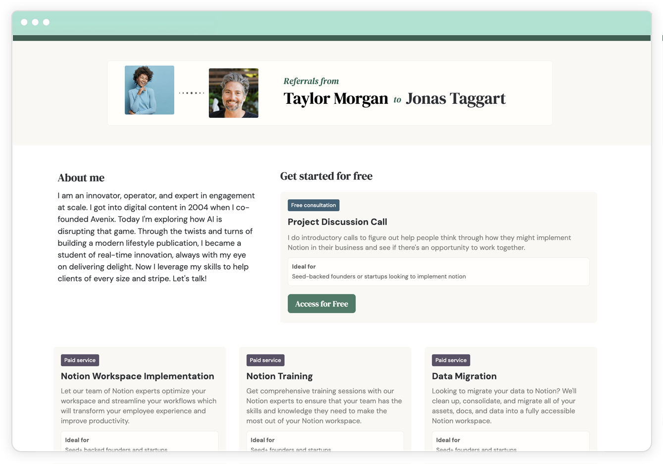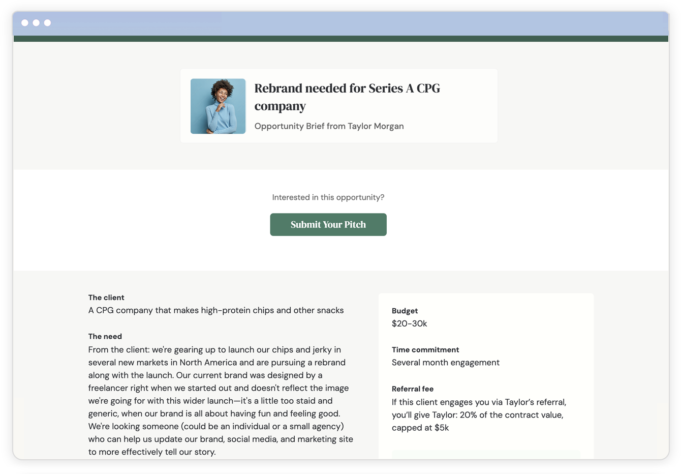 Easily make and track referrals to your partners. Make a 1:1 referral, or curate a group of people in your network who can help. Collect pitches, share a shortlist, and make intros with a single click.